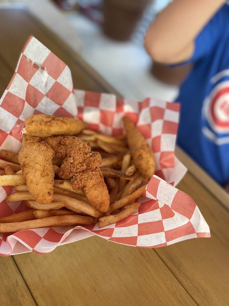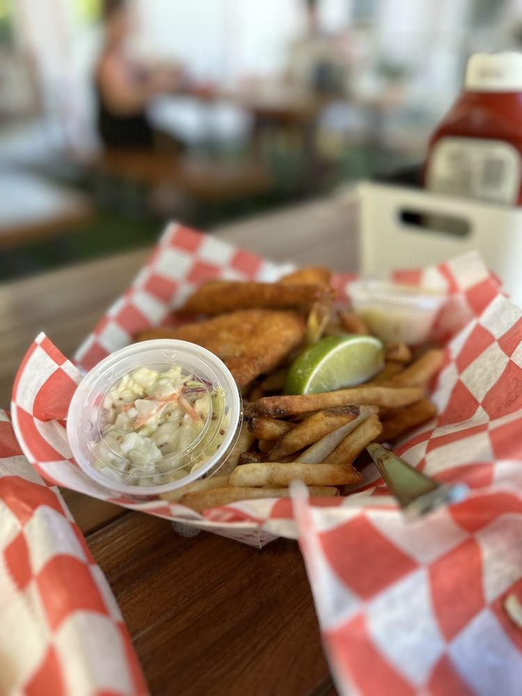 Fresh chunks of our local fish or Key West pink shrimp fried served with cole slaw french fries