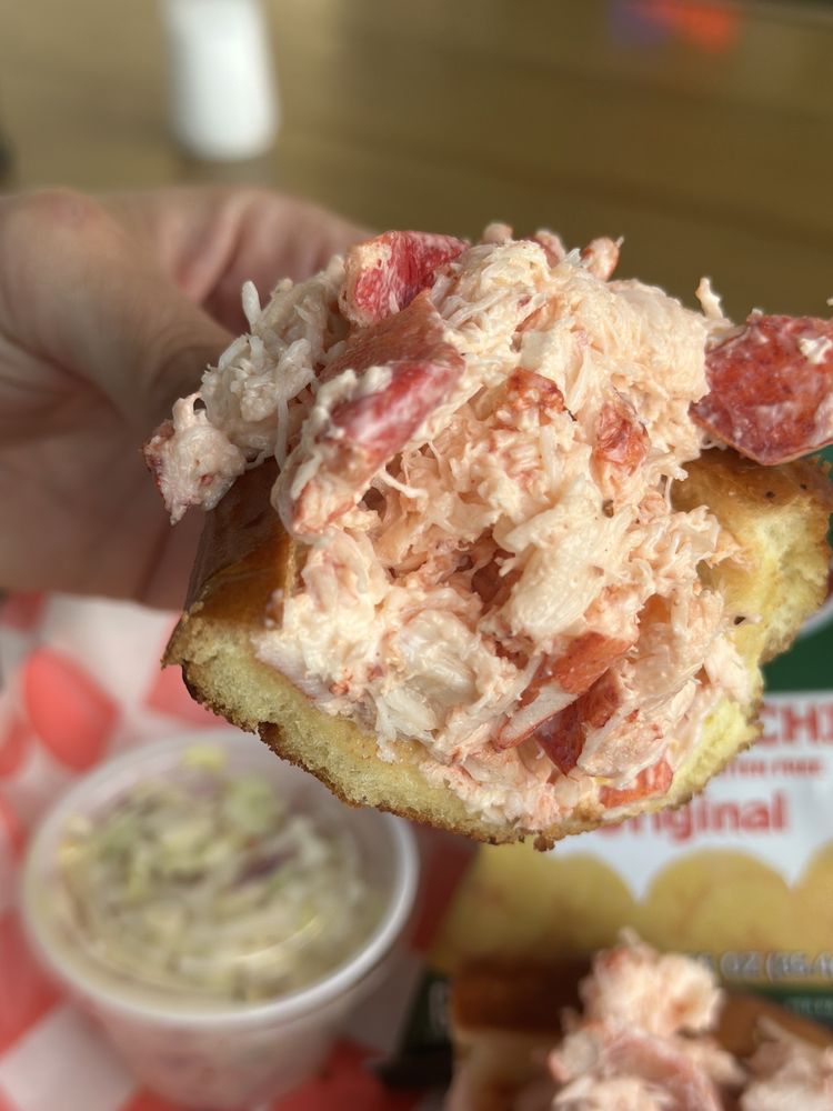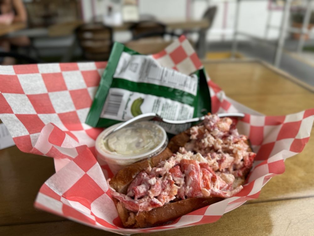The Classic! Maine lobster meat, key lime mustard, mayo and lemon juice on a traditional toasted bun served with cole slaw plantain chips