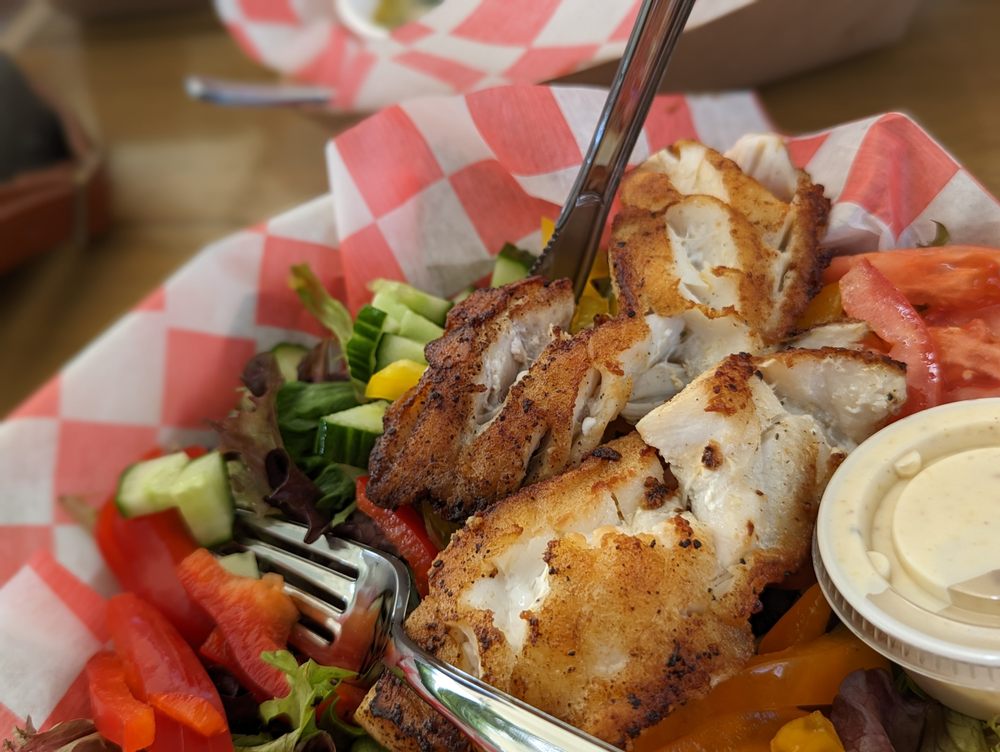 Fresh fish or pink shrimp fried, grilled or blackened on spring greens with tomato, cucumber and green pepper with our signature key lime mustard dressing served on the side
